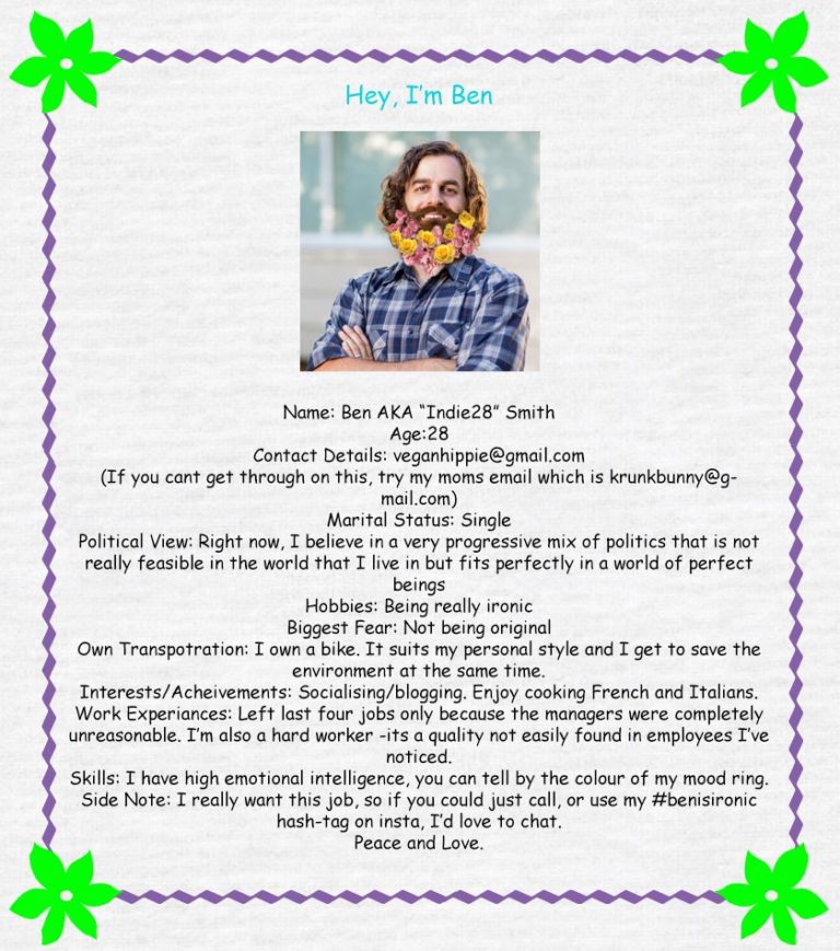Although he did have some impressive facial hair, Ben’s CV is unfortunately not going to make the cut. He made a few classic CV mistakes that can be easily avoided. Here we will unpack the 11 CV mistakes to avoid when you design your CV so that you don’t end up like Ben.